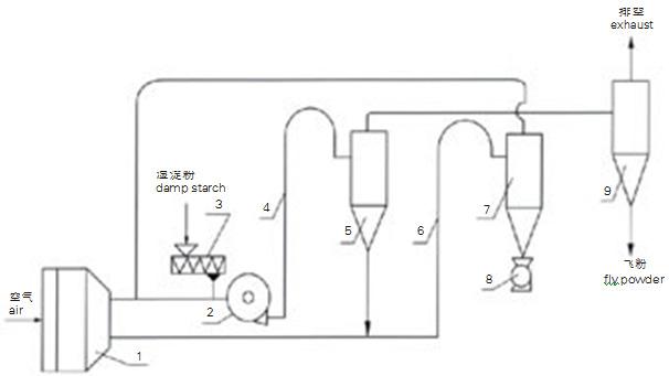 基本型氣流干燥設備,適用于松散狀、粘性小、成品為顆粒及粉末的物料。此流程示意為負壓氣流干燥,用戶可根據(jù)產(chǎn)品特性選擇正壓型式的干燥方法。